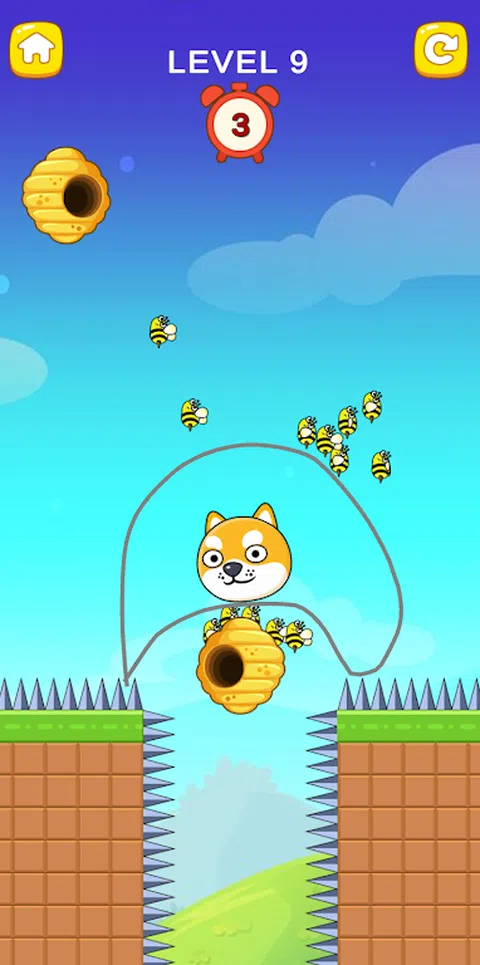 Save My Pets : Puzzle Draw 是一款惊人的益智狗益智游戏,适合那些寻求令人上瘾、有趣且具有简单游戏挑战性的东西的人,但它有很多挑战。,下载 Dog Rescue,Doge 处于危险之中!点击以画一条线,从蜜蜂的攻击中拯救小狗。有数百种方法可以解决每个难题,只需在屏幕上画线即可拯救狗