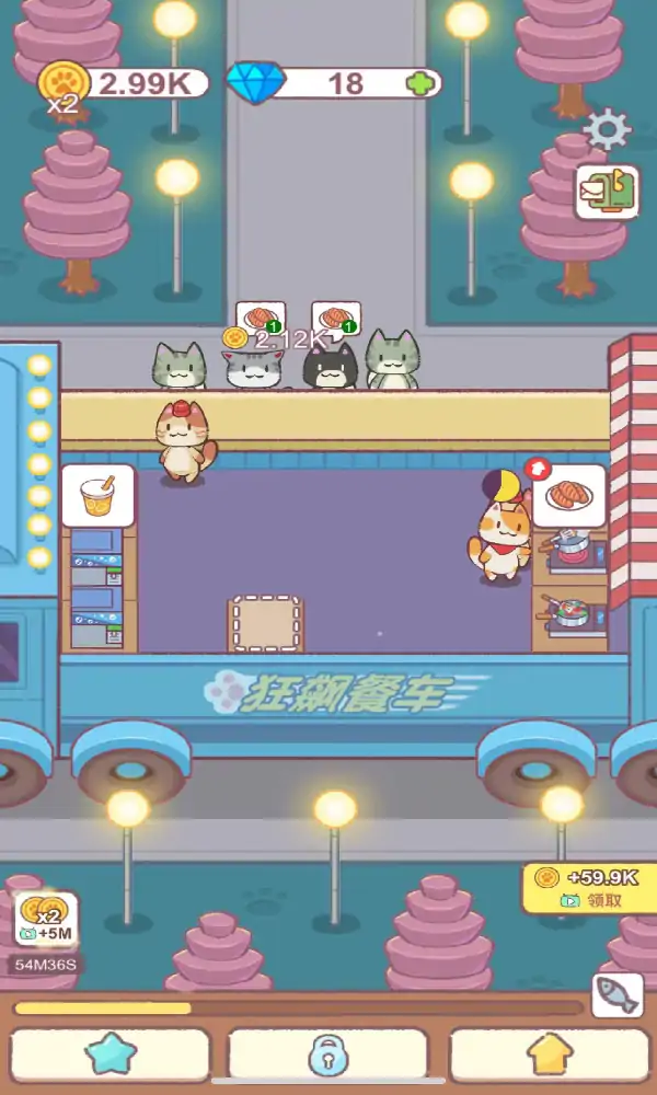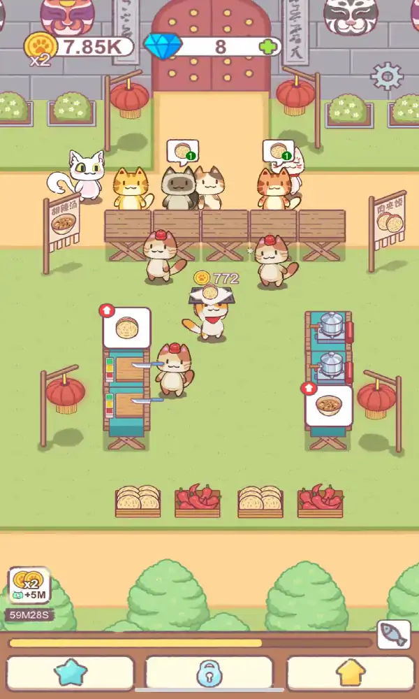 一款模拟经营游戏,治愈卡通的画面风格,放松简单的操作方式,在这里你将会成为一名店铺的店主,需要给顾客提供美味的食物,在游戏里您需要合理安排时间、管理资源,并满足顾客和猫咪的需求;丰富的小吃摊设备等你去管理,不断经营你的小吃摊来打造最棒的小吃店,尽情享受不同的游戏乐趣,体验更多精彩内容! 游戏特点: 经典的模拟经营玩法。玩家可以在餐厅中进行各种建造和装饰,将你和猫咪的生活环境变成你最喜欢的样子。 游戏提供了各种可爱的猫咪可以解锁。玩家可以选择各种不同类型的猫咪和它们一起互动,培养真挚的情感。 完成各种任务,不断的收集道具,好好的照料猫咪。在游戏中有一些互动玩法,和猫咪一起进行,超级有趣。