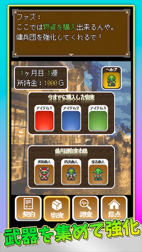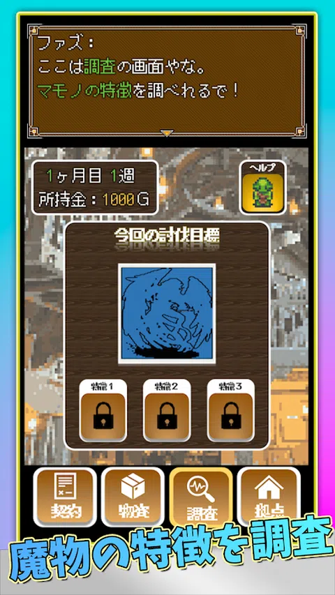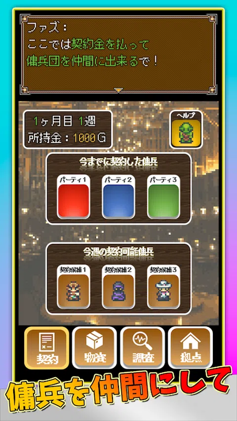 召集你的朋友,挑战怪物!派对模拟RPG! ▼推荐给这些人▼ 喜欢像素画的人,喜欢解谜的人,喜欢剑与魔法世界的人,想在短时间内看到结局的人,想玩怀旧游戏的人。 ▼游戏点数▼ ○ 简单但(令人惊讶)有深度的战斗系统! ○ 没有(老实说很麻烦的)地图探索或升级! ○ 扎实的故事发展(不无聊)! ▼剧情简介▼ 从今天开始,你将作为讨伐契约公司“Esuko佣兵事务所”的一员开始工作。 与代表事务所的巫师和高级哥布林一起挑战各种怪物吧! ▼游戏流程▼ 1.征服的准备 讨伐怪物时,准备工作至关重要。在有限的时间和资金下,你将与与你合作的雇佣兵团体签订契约,购买物资来增强你的盟友,并调查你想要征服的怪物。 2.与马诺战斗 月底,我们终于出发去讨伐怪物了。我们的目标是征服那些有自己怪癖的怪物。 ▼关于现场解说/分发▼ 游戏视频可以自由分发。