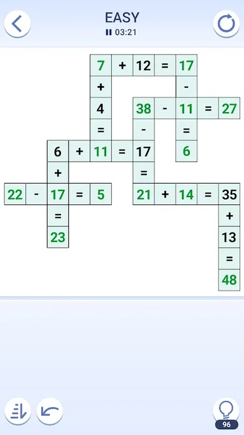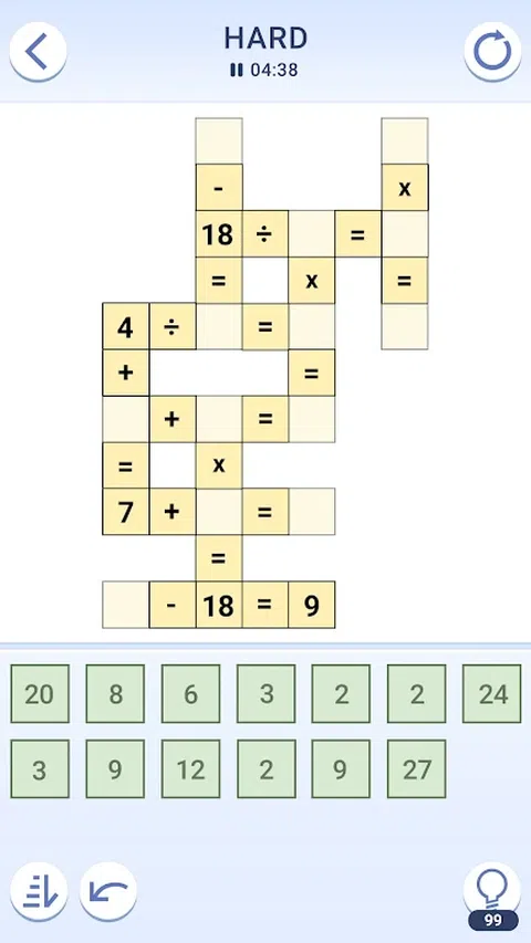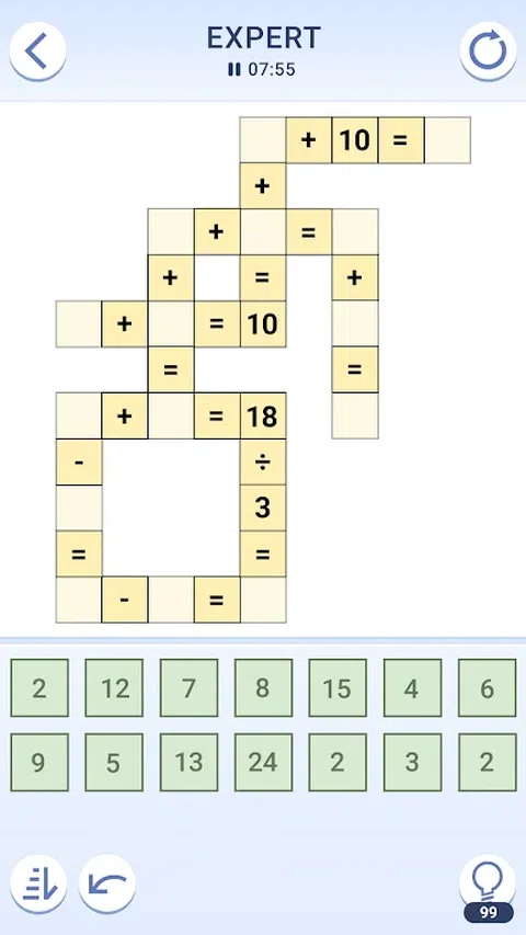 探索终极免费数学益智游戏 - 立即进入交叉数学益智游戏!通过这个引人入胜的数学挑战,随时随地玩,磨砺你的思维并放松身心。 Cross Math Puzzles(交叉数学谜题)提供令人兴奋且刺激脑力的解谜体验,考验您解决问题的能力。凭借各种级别和可调节的难度设置,您可以根据自己的数学专业知识定制游戏。 游戏玩法涉及使用加法、减法、乘法和除法解决一系列数学难题。您还需要应用逻辑和批判性思维来破解每个谜题。Crossmath 是保持大脑敏锐和提高数学技能的绝佳方式! 主要特点: - 通过加法、减法、乘法和除法解决难题。 - 在处理加法和减法之前优先考虑乘法和除法。 - 无限撤消:犯了一个错误?没问题—只需单击即可撤消! - 通过详细的游戏统计数据跟踪您的进度,每次尝试都争取新的高分。 - 选择您喜欢的难度级别:简单、中等、困难或专家。 交叉数学是测试您解决问题能力的完美游戏,同时带来乐趣。为什么要等?立即尝试交叉数学谜题! 使用提供提示的各种道具来提升您的游戏玩法。有了这些功能,游戏将带来数小时的乐趣和挑战。掌握游戏并立即成为交叉数学专家! 立即开始使用这款数学益智游戏训练您的大脑