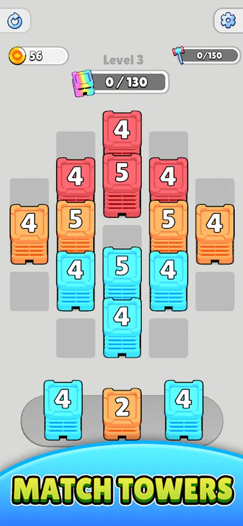 点击并创建塔!收集所有颜色!堆栈塔现在