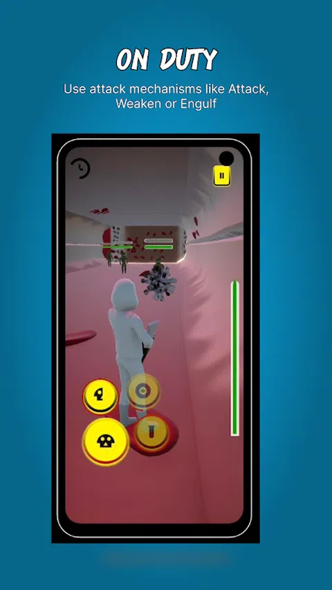 在这款激动人心的动作游戏中,您将扮演白细胞的角色,白细胞是人体强大的防御系统。穿越三个独特的关卡:错综复杂的骨髓、快速流动的血液和复杂的大脑。你的任务?消除病毒、细菌和毒素等有害威胁,保持身体健康! 掌握多种攻击机制: 杀戮:用强大的攻击消灭敌人。 吞噬:包围并吸收威胁,将其彻底消灭。 削弱:削弱敌人的力量,以便更容易消灭。 探索多样化的环境: 骨髓:白细胞的发源地。 血流:在身体的运输系统中竞速。 大脑:保护重要的控制中心免受伤害。 你准备好成为终极防守者了吗?立即下载并加入战斗