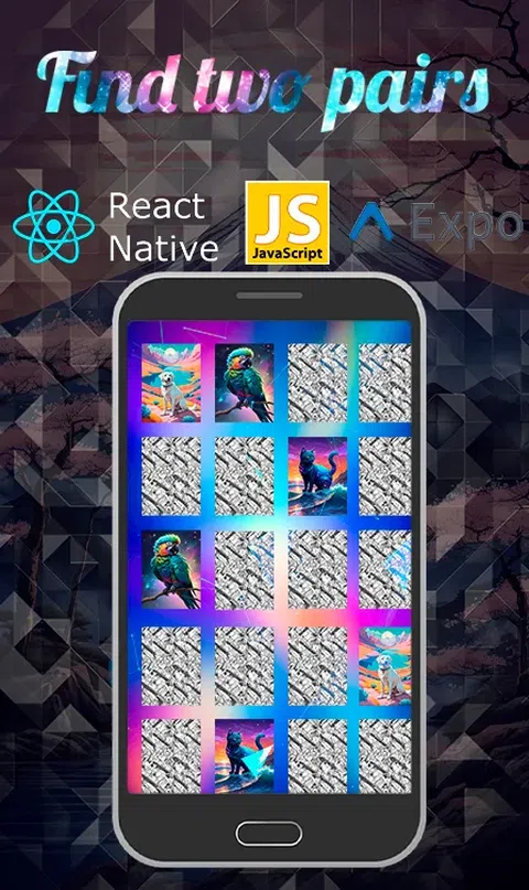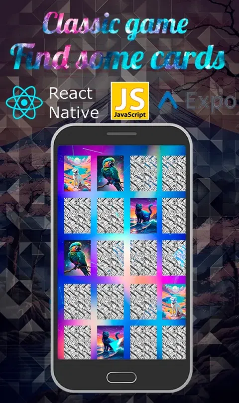在您的手机上找到“找两张牌对”游戏,增强您的记忆力和视觉感知!这款令人上瘾的益智游戏是使用 React Native 和 JavaScript 创建的。玩得开心! 方法如下 玩法:点击“开始”按钮开始游戏。 游戏面板将显示面朝下的牌。 为了获胜,您必须通过连接来找到成对的相同图片。您匹配对的越快越准确,您的分数就越高。 游戏有许多难度级别,随着您前进,游戏场地上会出现更多卡牌。 游戏的目标是尽快找到所有匹配的图片对。 寻找配对是锻炼记忆力和享受空闲时间的好方法。立即下载游戏,展示您出色的记忆能力