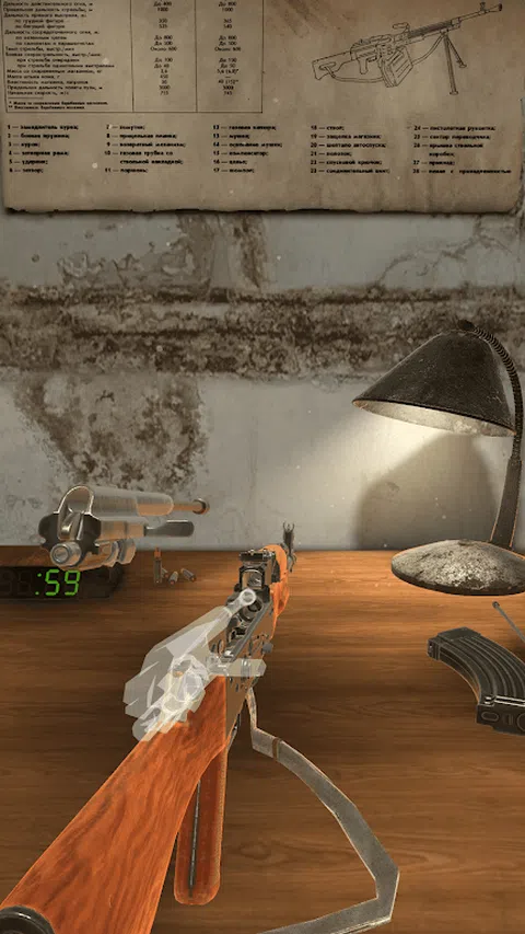 DisAssemble Gun - 关于武器内部结构的游戏。 您可以完全拆卸和组装不同类型的武器。 对于那些想要了解内部结构的人,有一个指南可以帮助你做到这一点。 游戏以现实主义风格制作,武器和环境尽可能与真实物体相似。所有物体的相互作用声音也使用真实武器部件记录