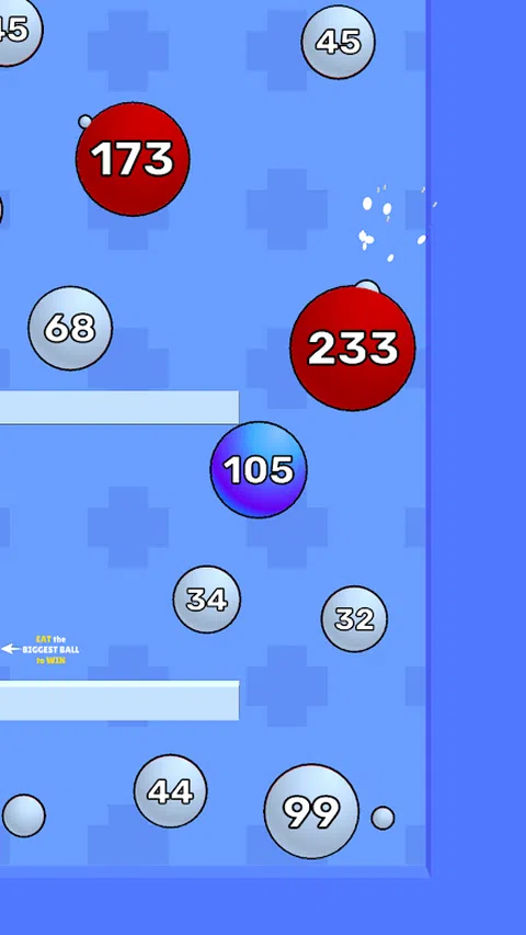 你的目标是通过吸收其他球来成长。通过吐出自己的物质来移动。但是要小心:当你移动时,你会缩小。 只需轻点即可吐出空气并向相反方向移动。 触摸一个比你小的球来吸收它。如果球比你的大,那么它会吃掉你