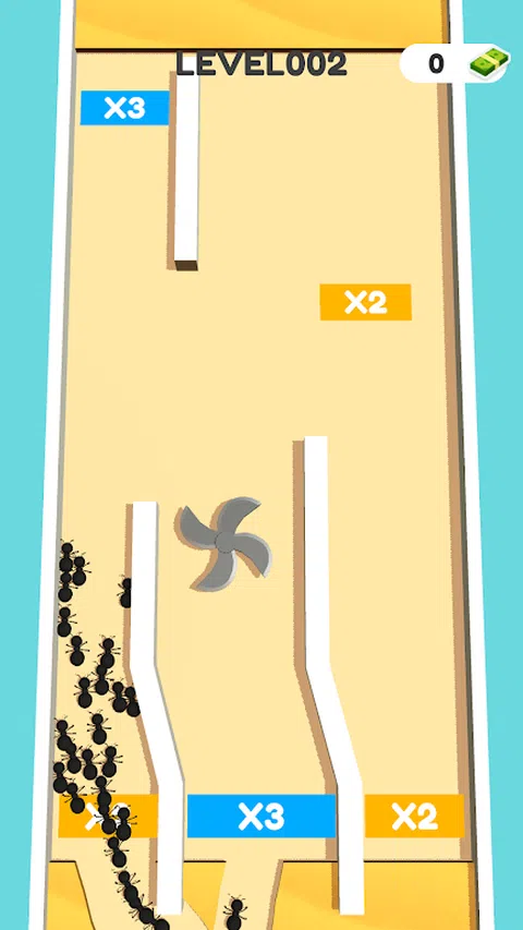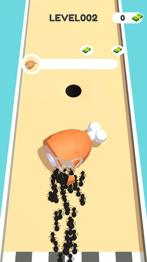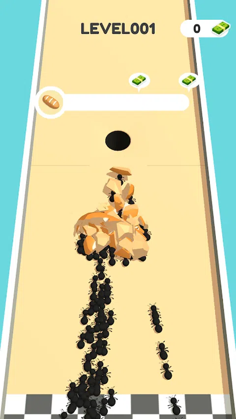 这是一款简单的休闲游戏。滑动沙子区域,绘制路线让蚂蚁可以思考,让蚂蚁变得越来越多。当蚂蚁到达终点时,当您达到数量时,它可以移动食物以完成关卡