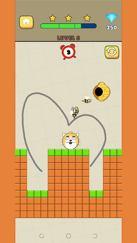 ?拯救猫是一款休闲益智游戏。您用手指画线以创建墙壁,以保护猫免受蜂巢中蜜蜂的攻击。在蜜蜂攻击期间,您需要用彩绘墙保护猫 10 秒钟,坚持下去,您将赢得比赛。 ?怎么玩: 1. 滑动屏幕以创建一堵墙来保护猫; 2. 只要你不松手,你就可以一直画线; 3. 制作出满意的图案后即可松手; 4. 等待蜂巢中的蜜蜂攻击; 5. 扶住墙壁 10 秒钟,这样猫就不会被蜜蜂攻击; 6. 您将赢得比赛。 ? 获胜条件: 猫活到计时器用完为止。 如果有鱼,猫也必须抓住鱼并生存。 如果有炸弹(爆炸前 5 秒),防止炸弹在自爆之前被摧毁。 ?游戏特色: 1. 多种通关方式 2. 简单有趣的通关模式 3. 有趣的猫咪表情 4. 谜题和有趣的关卡 ? 欢迎尝试我们的游戏,如果您对游戏有任何意见,可以在游戏中提供反馈,感谢您的参与