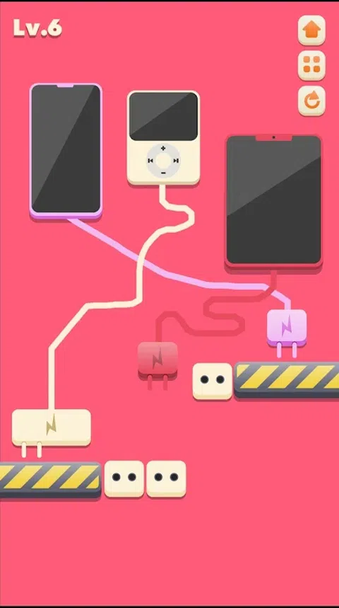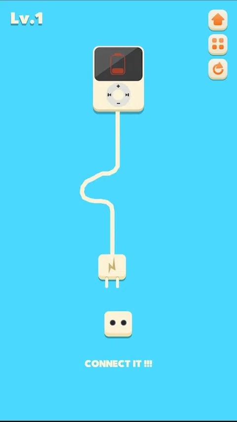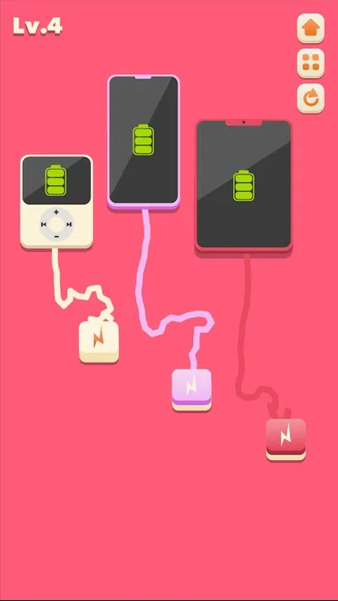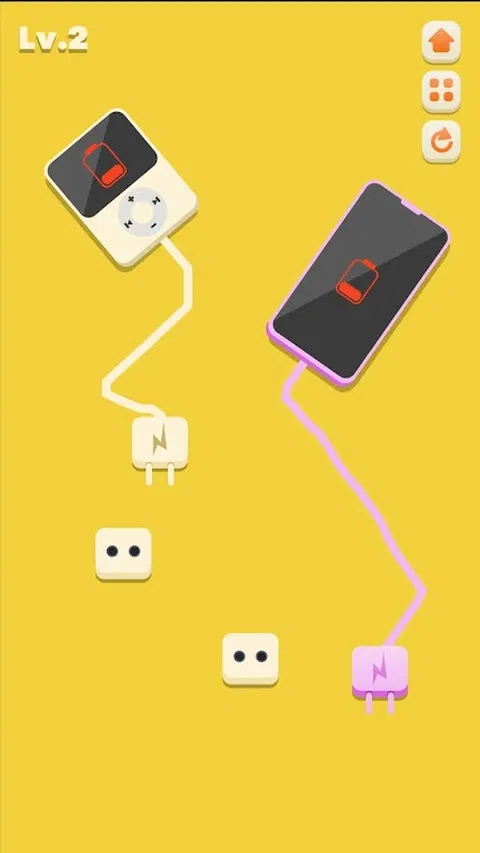 相当多的现代设备由各种电池供电。因此,它们偶尔需要充电。今天在游戏中为一切充电,您将为各种设备充电。您面前的屏幕上将显示一个电源插座。您的设备将与它保持一定距离。末端带有插座的电源线将从其上脱离。您必须用鼠标拖动插头并将其插入插座。这样,您将设备连接到电源,并开始充电。为此,您将获得积分,并且您将进入游戏的下一个级别。 Charge Everything - 在此游戏中,您需要绕过障碍物将所有设备(例如手机、平板电脑、玩家和汽车)连接到插座中,您还需要穿过封闭的墙壁并使用风车通过关卡。 Charge Everything 是一款有趣的益智游戏,挑战您连接电子设备,这是一项每天都越来越需要的活动。将各种电子设备(例如手机、音乐播放器甚至电动汽车)连接到电源,以便在时间用完之前在每个级别为它们充电。 如今,我们的优势是可以使用无电缆的设备,但是当然我们必须为它们充电才能使用它们。您可能需要插入风扇以吹走阻挡其中一个手机插孔的障碍物。有些电缆会很短,另一些电缆的连接器只能放在一个特定的位置,而其他电缆可能需要以某种方式释放。找出如何连接一切,您将获胜。尽享免费在线游戏 Charge Everything 的乐趣 这是一款简单而引人入胜的益智游戏,基于将所有充电器安装到插座条上的经典斗争。插入所有内容以清除关卡。 在插入之前,请注意电源线的长度和充电器的尺寸。 激活门以将充电器插入插座