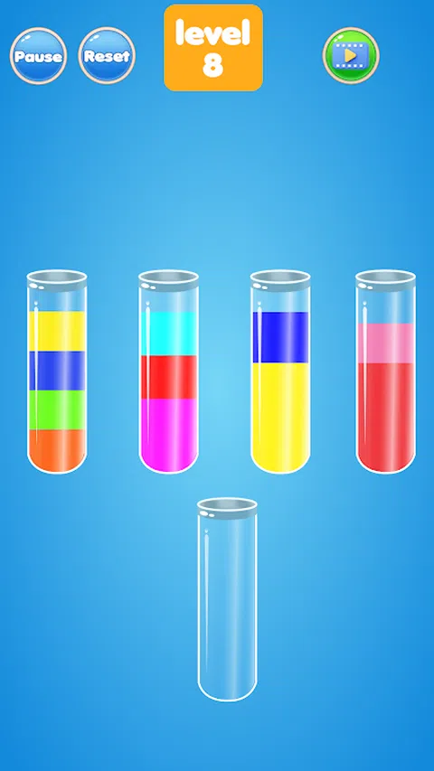 通过水分类益智游戏挑战您的大脑!这款丰富多彩的游戏既有趣又棘手,非常适合激发您的思维。当您将颜色液体分类到试管中时,享受烧脑的乐趣。看看你能将有色水排列在不同的试管中。准备好在这个分类游戏中测试您的技能! 排列玻璃管时要小心,确保不会卡住。这款水分类拼图颜色游戏易于玩,没有时间限制。您可以用一根手指玩这个游戏。 [游戏方法] .点击一个管子将水倒入另一个管子。 只能将水倒在相同颜色的顶部。 确保有足够的空间来倾倒。 将任何颜色的水移入空管中。 通过在每个管子中收集相同颜色的水来完成关卡。 准备好测试您的大脑技能了吗?立即下载水排序颜色拼图并开始排序