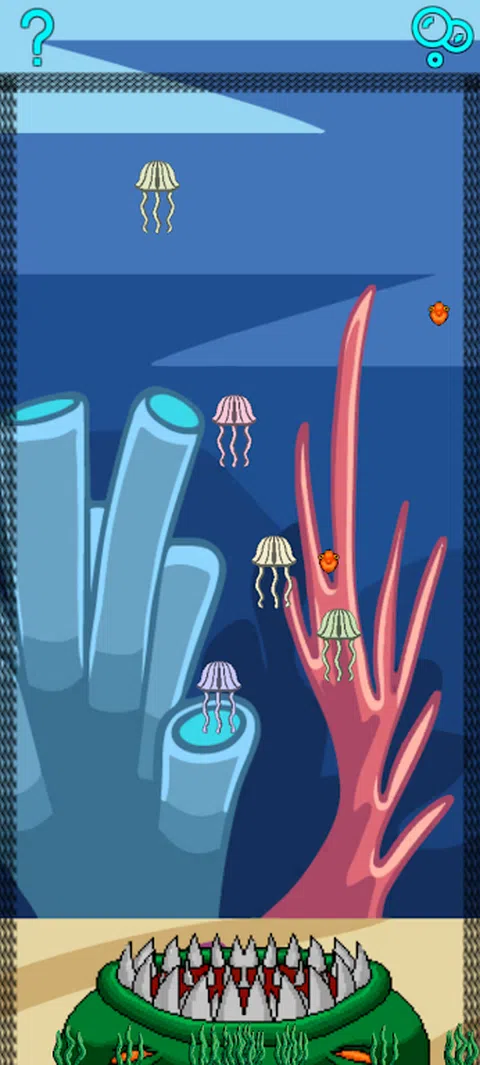 水母被困在网里,下面有一个怪物,水母慢慢地沉入其巨大的嘴里。 当渔网不在时,将水母拖出屏幕,快速拯救水母。使用河豚将多个水母炸开,或将河豚扔进怪物的眼睛以使其撤退。或者,如果您不顾一切,请使用泡泡墙将所有果冻向上推!但是要当心,如果怪物吹泡泡,它就会将它们全部吸掉! 如果你能完成 10 级,你就赢得了游戏,你已经完成了游戏并保存了果冻。你能做到吗? 如果您有任何问题或想法,请与我们联系