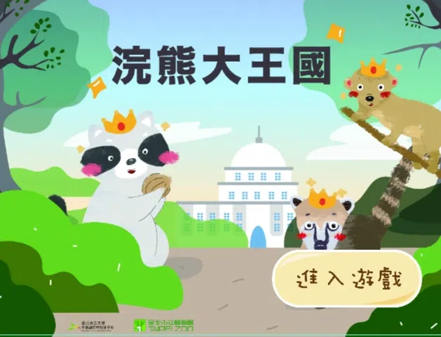 「浣熊大王国」是一款台北市立大学学习与媒材设计系与台北市立动物园合作的教育型APP,带大家认识动物园中的可爱动物,运用寓教于乐的方式,让学习者对于三种浣熊的生活习性和保育知识,建立正确的认知。 在「浣熊大王国」APP中,学习者将透过参与故事角色的方式进入游戏。前导动画让使用者进入游戏情境中.年老的浣熊国国王即将退休,浣熊国将选出下一位继承人,学习者需要从三位继承人中选出最佳人选。接着学习者就可以开始选择不同地带的浣熊来认识,且经过学习后可获得认证脚印,最后进到游戏时间,总共有四个关卡,包括配对游戏、回答问题以及拼拼图,学习者要根据前面所得知识,做出正确的判断来破关 本作品可做为自学和户外教育的准备活动或延伸学习,并可至[诺亚方舟动保数位学习园地]下载EXE版以及Android版,现在就让我们一同来参与吧