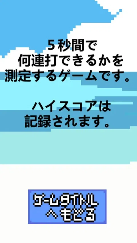 你可以在有限的时间内重复按多少次按钮! ? 我们认真追求的第二场比赛! 简单的玩法! 简单的游戏画面! 这就是为什么任何人都可以轻松玩! 并且随时轻松完成! 另外,这次我们还创造了高分! 现在,让我们再次开启重击的冒险阶段吧