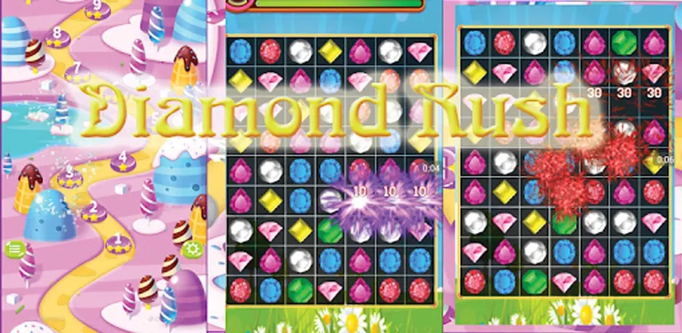 Diamond Rush 是一款简单但非常精致有趣的三消益智风格游戏 如何玩: 1:匹配 3 个或更多相同的钻石。 2:匹配钻石,直到面板透明,钻石星将出现。 3:使钻石星星下降到最后一行以通过下一个级别。 分数提示: 快速消除钻石可以获得额外的分数。 特点: - 两种游戏模式:街机模式和计时模式(经典) - 匹配 4 个钻石可以拿走钻石炸弹。 - 匹配 5 个钻石可以赢得变色钻石和 2 个照明。 - 炸弹钻石可以消除周围的钻石。 - 变色钻石可以消除任何其他彩色钻石。 - 计时钻石可以延长游戏时间。 - 闪电钻石可以消除一行或一列的钻石。 - 出色的图形和音乐,易玩,难以停止! 全部免费,希望您会喜欢 Diamond Rush
