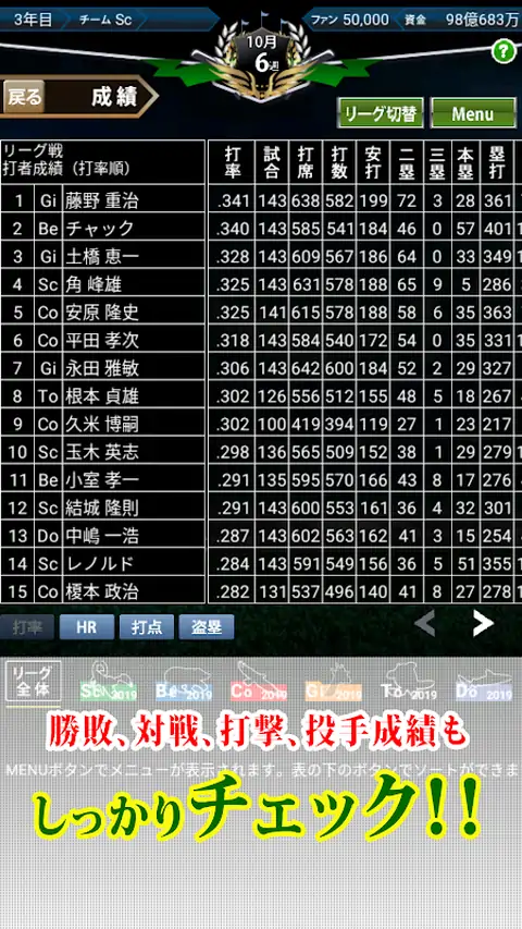 在怀旧的 2D 游戏中成为您梦想的棒球经理! 我想成为一名职业棒球经理,并以赢得联赛和国际锦标赛为目标。 管理版是一款可以享受棒球管理和表现数据的游戏。 通过球员分配和策略(短打、全力挥击、盗垒、三振瞄准、跑垒员警报、提前防守等)带领您的球队取得胜利! ! 您可以跳过比赛并查看比赛结果和球员得分,或者编辑球员以对真实比赛进行预测。 超过6,200名玩家登场! (此为虚构玩家) (喜欢训练选手的请观看训练版) 永远是导演