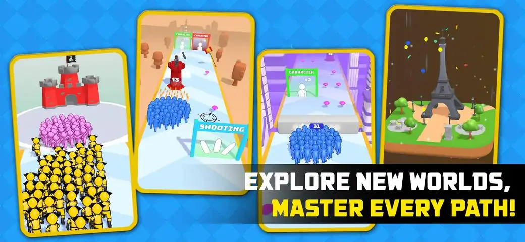 欢迎来到“超级火柴人快跑”的惊心动魄的冒险世界! 准备好通过“Hyper Stickman Run”享受动感十足、令人心跳加速的体验!成为人群大师,带领你的火柴人战士通过激动人心的 3D 奔跑冒险,带来无尽的乐趣!Hyper Stickman Run 是一款令人振奋的跑步游戏,结合了激烈的奔跑动作、战略射击和创新的人群机制。 “超级火柴人快跑”是一款终极跑酷游戏,可让您沉迷数小时。准备好迎接令人兴奋和令人上瘾的游戏,这将最大限度地测试您的反应和技能。与您的超级火柴人奔跑竞争,并开始执行任务,登上排行榜的顶端,证明您作为最快、最敏捷的奔跑者的实力。 利用刺激的策略和战术来克服具有挑战性的障碍并获得最高分,做出决定成败的瞬间决策。沿途收集道具,以升级您的超级火柴人奔跑并解锁特殊能力,确保您以时尚和技巧征服路线。 在“超级火柴人奔跑”的多彩动态世界中冲刺时,体验无尽的乐趣和高强度动作。一路上,升级您的超级棒人并解锁特殊能力,这将帮助您像真正的冠军一样征服球场。逃离危险的陷阱,掌握时尚而精确的奔跑艺术。 控制一个手持强大枪支的火柴人,踏上充满障碍、互动和刺激挑战的史诗冒险。 你的任务?奔跑、射击、收集和征服! 为跑酷游戏做好准备,考验你的反应能力、战略思维和人群管理技能。 最好的部分?这款适合家庭的游戏是免费游戏,因此您现在就可以下载并掌握运行,而不必担心广告会打断动作。此外,它没有广告,确保为所有年龄段的玩家提供不间断的身临其境的游戏体验。 主要特点: - 左右转向以避开障碍物的直观控制 - 打破六角形方块以招募火柴人并建立强大的人群 - 自动射击功能,打击敌人并清除路径 - 参与迷你游戏和互动任务以获得额外奖励 - 令人兴奋和令人上瘾的游戏玩法 - 升级和解锁道具 - 无尽的乐趣和刺激的动作 - 刺激的策略和战术 - 逃脱和征服 - 免费游戏,适合家庭玩 - 无广告 那么,您准备好进行冒险并玩 Hyper Stickman Run 了吗?将手指放在起跑线上,为挑战做好准备,让刺激开始!所以,召集你的火柴人帮,开始冒险吧! 准备以前所未有的方式奔跑,面对激动人心的障碍,并采用巧妙的战术来智取对手。 挑战您的朋友,争夺头把交椅,并在这款高能量跑酷游戏中成为终极冠军。不要错过体验“超级火柴人快跑”令人心碎的刺激的机会 - 最令人振奋和动感十足的跑步游戏! 体验奔跑的终极快感。在“超级火柴人奔跑”中竞争、征服并成为顶级火柴人奔跑者!你准备好迎接挑战了吗?让比赛开始