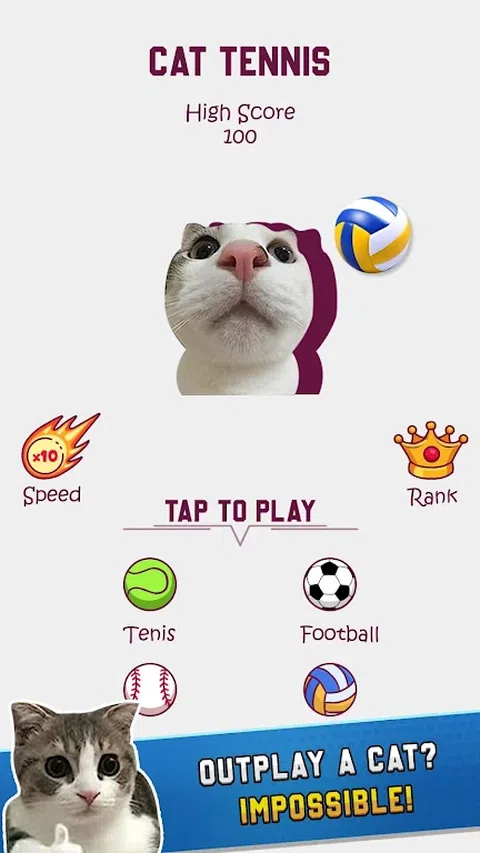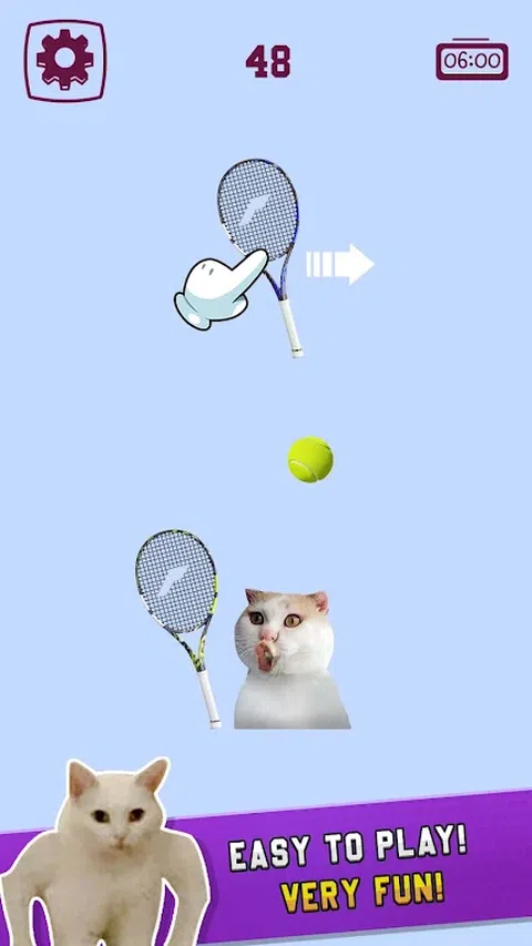 ?您喜欢社交网络上有趣、流行的模因猫吗?您想锻炼但只有一部手机?猫咪网球大师在等你。? 在猫网球大师,您将参加格斗运动:网球、羽毛球、足球…而您的对手是猫?。不要以为他们会被轻易击败!游戏级别将逐渐增加,猫会变得越来越敏捷,发动攻击,使您可以使用所有力量和观察力来进行阻挡。 著名猫咪的表情会让你在参加比赛时开怀大笑,不要输,它们会满意地笑起来。? ? 您需要做的是:握住球拍,巧妙地传球,使猫感到困难。随着您进入更困难的级别,遇到更多狡猾的猫?,您的观察力和力量将不断受到测试。与猫一起健身从未如此有趣! 游戏特色: ? 多彩的图形,有趣的声音 ? 每天有很多运动供您练习 ? 有着著名表情的猫咪角色正等着你去发现 ? 测试您的观察能力并改善您的健康状况 ? 如果您真的遇到困难,可以随时寻求帮助 ?猫咪网球大师 - 轻松有趣的游戏准备就绪。立即下载,与猫喵喵一起享受放松和乐趣的时刻