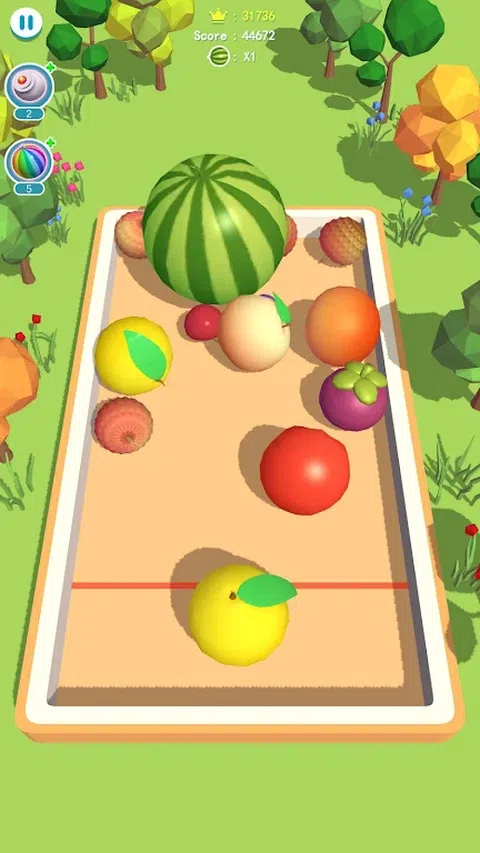 Merge Fruit 将经典的合并游戏和益智游戏类型结合在一起,带来令人上瘾和刺激大脑的游戏体验。? 如何玩这个令人费解的逻辑谜题: 准备好合并水果,创造终极水果 2048 脑筋急转弯体验。合并水果是一款游戏,其中心是两个较小的水果相互碰撞并变形为较大的水果,直到您最终获得大西瓜形状。圆形水果形状具有独特的滚动能力,为大脑训练游戏增添了额外的挑战和刺激。你的目标是防止堆叠的水果堆越过屏幕顶部的红线,因为这意味着终极大脑游戏的结束。 游戏特色: Merge Fruit 具有迷人而可爱的卡通风格,吸引着寻求心理挑战的所有年龄段的玩家。简单的游戏布局和易于使用的控件使合并水果成为合并水果脑筋急转弯游戏新手的一个令人上瘾的选择。 游戏采用经典合并机制设计,与重力传感器系统完美融合。每个级别都充满了有趣的逻辑谜题和无数不同的水果,需要战略规划和聪明的思维来融合。 立即下载 Merge Fruit,进入令人兴奋的水果世界,您的目标是合并、匹配并获得无尽的脑力游戏乐趣!让这款令人上瘾的游戏以其迷人的图形、有趣的大脑训练游戏和独特的功能吸引您。不要错过这个惊人的合并逻辑益智游戏 - 立即体验 Merge Fruit 令人费解的挑战世界