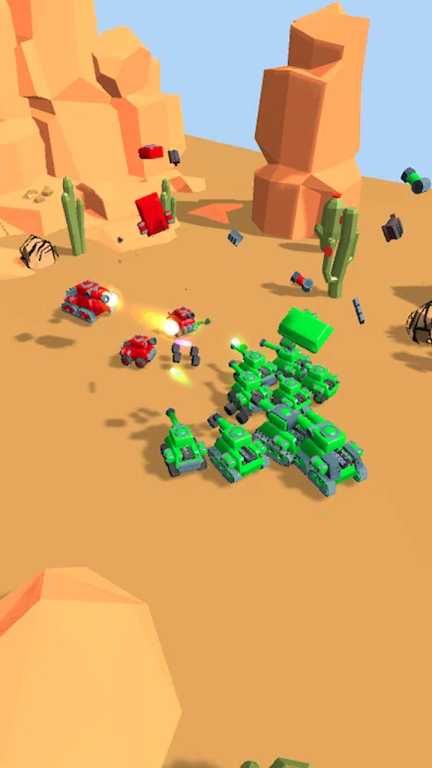 Tanks Merge Battle 是一款很酷的实时策略,类似于怪物传说和龙融合的史诗般的坦克战斗模拟器,适合所有想要合并坦克,享受坦克战斗并赢得战斗的人. 游戏的主要目标是通过将您的坦克组合成超级强大的坦克来击败所有敌人。敌人是熟练且经验丰富的战略家,他们巧妙地部署军队,因此赢得这场坦克战并不容易。 攻击以控制敌人的位置,享受我们最好的坦克战斗游戏! 快速反应和思考。使用您的策略和战术来赢得战斗并进入下一个级别。 只有 1% 的玩家会解锁所有坦克并通过测试!你准备好了吗? 组合相同的坦克,获得更新、更强大的类型