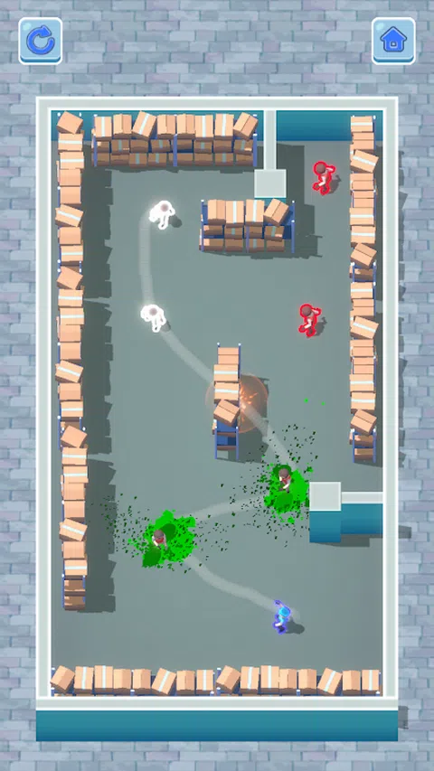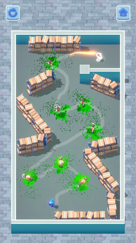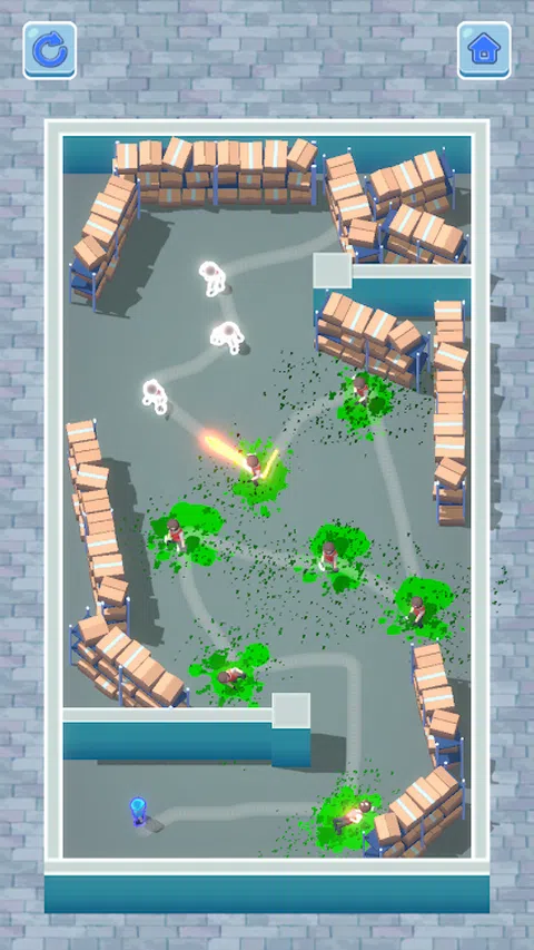画线连接每个敌人的位置,使子弹沿路径飞出,从而一次击倒所有敌人