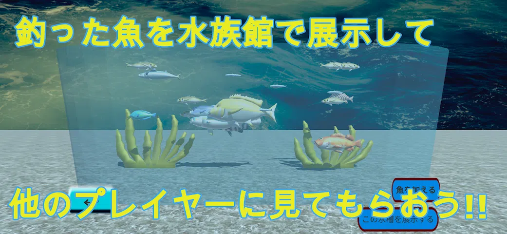 1.为了钓鱼,首先我们要去钓鱼点。 共有三个地点:海滩、防波堤和近海。 您可以捕获的每条鱼都不同。 2. 前往商店购买高级鱼饵,这将增加您捕获稀有鱼类的机会。 3. 进入水族箱屏幕,展示您捕获的鱼。 如果您按下展示按钮,其他玩家就可以看到它。 水族箱一共有5个屏幕。通过组合各种鱼类创造出独特的水族箱。 推荐给这些人 ・我喜欢钓鱼游戏。 ・我想玩新内容的游戏。 ・我通常玩钓鱼游戏。 ・我喜欢养鱼。 ・小时候,我去过水族馆。 ・我喜欢水族馆。 ・我想养鱼。 ・喜欢观察。 ・想钓鲷鱼、鲭鱼等真实存在的鱼。 ・我想体验一下水族馆。 ・我想玩一个建造水族馆的游戏。 ・无论春夏秋冬,无论晴天、雨天、阴天、大风、雪天,我都想钓鱼。 ・我想经营一家水族馆。 这个游戏是关于用你捕获的鱼建造一个水族馆。收集各种类型的鱼并将它们展示在水族馆中