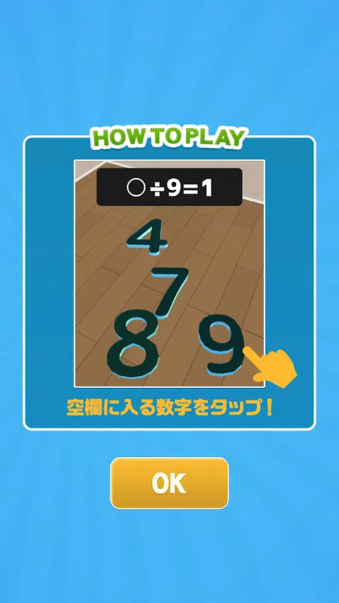 通过“数字填空拼图”训练您的计算技能和直觉! 通过简单的益智游戏来诊断您的大脑年龄。 玩起来非常简单! 只需找到与空白匹配的数字并点击它即可! 任何人都可以轻松玩! 尽情玩耍吧