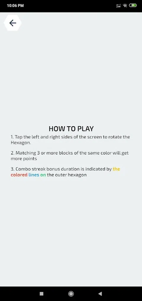 这是一款有趣但具有挑战性的积木游戏。您将获得以填充六边形的速度飞来的彩色方块。这些需要通过匹配三个或更多相同颜色的碎片来清除。如果六边形已满,则游戏结束。 享受游戏,将您的分数列入排行榜