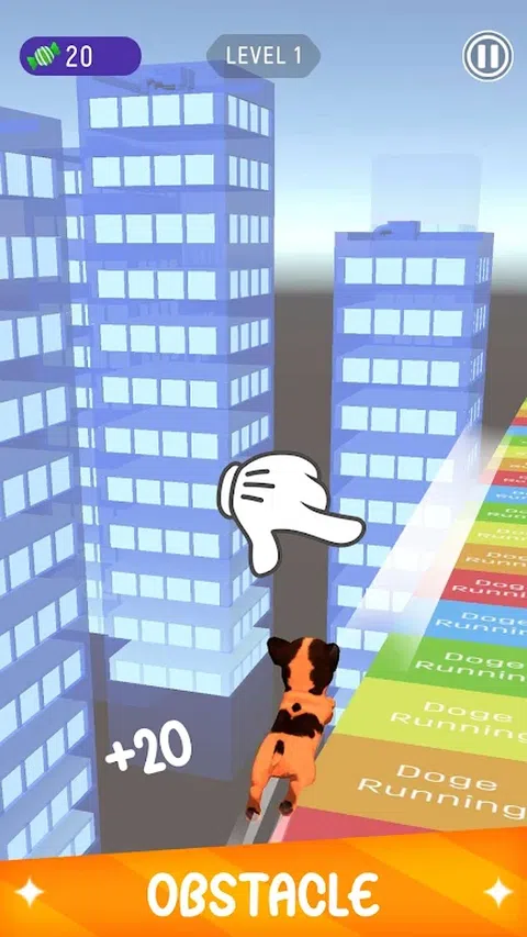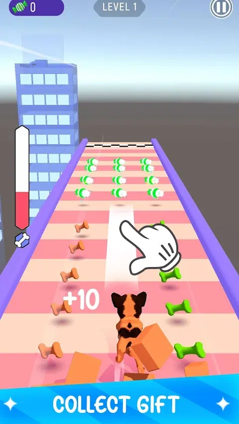简单的游戏。通过滑动屏幕将角色向右或向左移动。玩家控制狗奔跑并收集奖励糖果。交换积累的糖果以营救受保护的狗。 此外,玩家可以观看广告以积累奖励。对于当月取得最佳成绩的人,将获得奖励