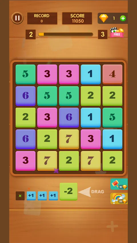 适合打发时间的超休闲游戏。清爽木纹的界面,令人着迷的数学游戏。它一点都不难,只需要将3个以上相同的数字放在一起就可以合并,并且获得更高的数字