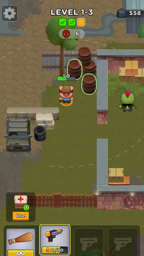 欢迎来到冒险和刺激的世界!在我们的卡通动感十足的游戏中,您将扮演一个可爱的猪英雄,开始寻求击败来势汹汹的动物。浏览具有挑战性的关卡,击败敌人,并进入下一阶段,但这还不是全部! 甜蜜之家 在关卡之间,返回您舒适的基地 - 您称之为家的地方。解锁新的工作台以获取各种武器和服装。这些工作台还可作为装备升级站,确保您为未来的战斗做好准备。 策略游戏 在每个级别,您的任务都很简单但具有挑战性:消除足够的敌人以打开进入下一阶段的大门。但是等等,还有更多!在关卡中搜寻隐藏资源,这些资源仅在您靠近它们时才会突出显示。这些资源为您提供金钱、弹药或健康包。 资源管理 弹药和生命值是有限的;明智地管理它们以留在游戏中。否则,您将只剩下一根蝙蝠,这对于战斗来说并不理想。 特点: 可爱的卡通图形和角色 征服多个关卡 击败各种各样的敌人 可解锁的工作台,用于装备定制 资源管理,保持游戏的吸引力 健康和弹药升级,实现可持续战斗 身临其境的音效和背景音乐 准备好,瞄准并射击!现在是时候从邪恶动物的魔掌中夺回你的世界了。立即下载,踏上充满行动、策略和刺激的旅程