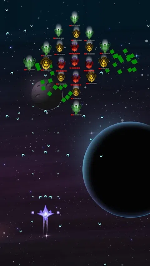 您的目标: - 飞行并摧毁外星入侵者 - 升级您的船以消灭所有敌人