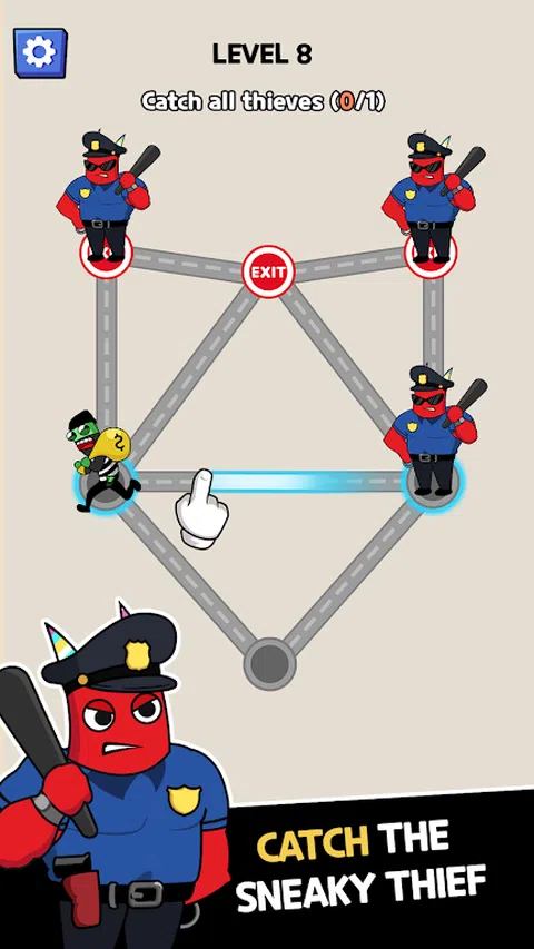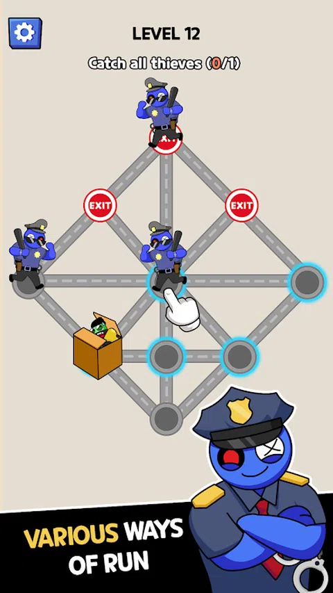 有一天,你走在路上,看到小偷逃跑,你不知道如何抓住他们 ? ? 在《抓住小偷:帮助警察》中,您将引导警察以最准确的方式移动以包围并抓住小偷。在这次围攻中,警察和小偷一次只能移动一步,因此如果您错过一步,小偷会立即成功逃脱。 ? ? ?怎么玩? 警察会一步步包围小偷 蓝色圆圈表示警察可以移动的地方 警察移动一步后,小偷也移动一步 当警察需要封锁所有道路时,小偷将被抓住,您将获胜 请注意,红圈是小偷的出口,因此警察必须在小偷逃跑之前抓住小偷 ?亮点? 数百个游戏关卡,独特的游戏玩法 新颖有趣的故事情节 用魔法矩阵挑战玩家 随意创建路径以抓住逃跑的小偷 ?让我们立即下载《抓住小偷:帮助警察》,开始捕捉小偷的惊心动魄的旅程。小偷正试图逃跑,请快速使用您的智商来帮助警察抓住他们