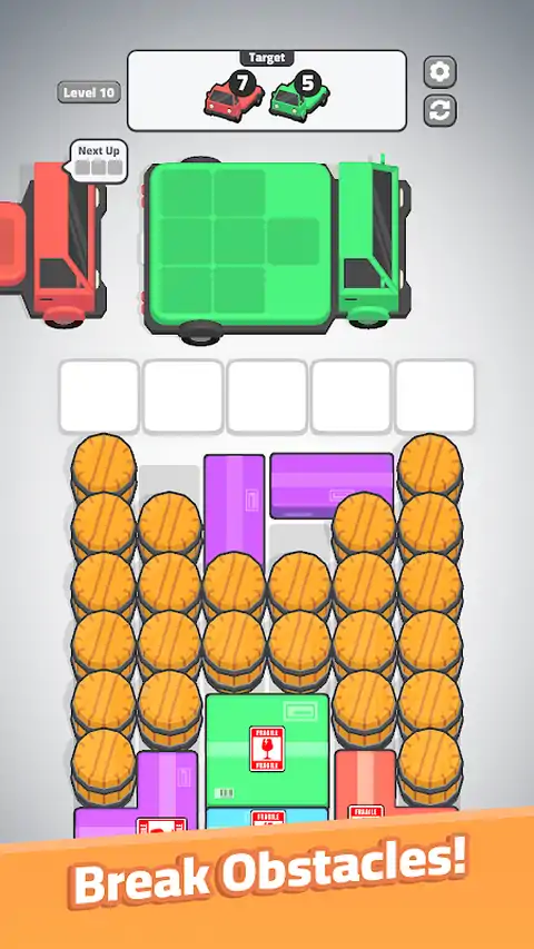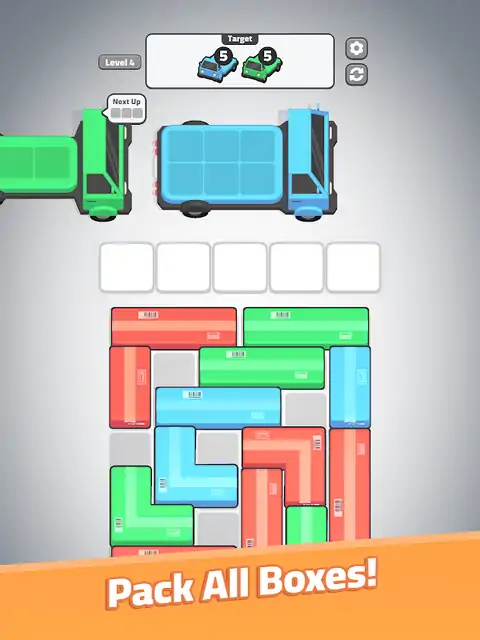 《Move Out》是一款令人兴奋的益智游戏,策略与速度相结合。您的目标是匹配三个或更多箱子,将它们装载到卡车上,并有效地清除每个级别。随着关卡的进展,谜题变得更具挑战性,空间更紧凑,布局更复杂。做出快速、明智的决定,将所有箱子装进去,解锁新卡车,并移动到下一个目的地。无论您是益智爱好者还是只是在寻找有趣的脑筋急转弯,《Move Out》都提供数小时充满挑战的引人入胜的游戏玩法