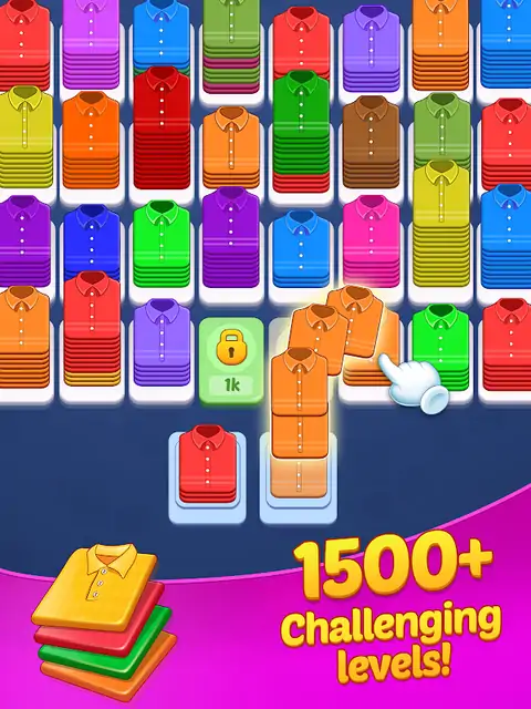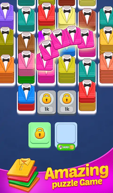 关于游戏 准备好迎接高度上瘾的颜色分类益智游戏之一,享受无尽的乐趣。 重新排列布架上的布,将 10 个或更多相同颜色的布捆成一捆,即可合并并获得奖励。 随着游戏的进行,你需要运用你的战略天赋来解锁更多的布架。 所有衣服的颜色和图案都各具特色,让您可以快速组装它们。 如果您玩过“水分类”、“球分类”或任何其他颜色分类益智游戏,那么这款游戏就是为您准备的。 Cloth Shuffle Sort 是最好的匹配和合并颜色分类益智游戏之一,可提高您的逻辑技能和脑力。 匹配和合并看起来是简单的任务,这会让你放松并缓解压力。 因为游戏玩法是无限的,所以你每天都在玩,你的娱乐之旅永远不会结束。 您可以随时使用助推器,以便您可以更快地匹配、合并或移除有缺陷的衣服。 每次成功都会获得羊毛线,这样你就可以定期升级布料工厂并生产更多布料。 特色 无尽的游戏。 随着您的进步获得奖励,这将帮助您升级布料生产。 多种主题,让游戏更加有趣,让你玩到绝不会登机。 容易上手,难于精通。 独特的颜色和图案。 适合所有人。 出色的设计和声音。 功能简单,易于使用。 良好的粒子和视觉效果。 最精美的动画。 如果您喜欢匹配游戏或排序益智游戏,那么 Cloth Shuffle Sort 就是为您量身打造的。所以,现在就下载布料洗牌,提高你的逻辑和战略技能