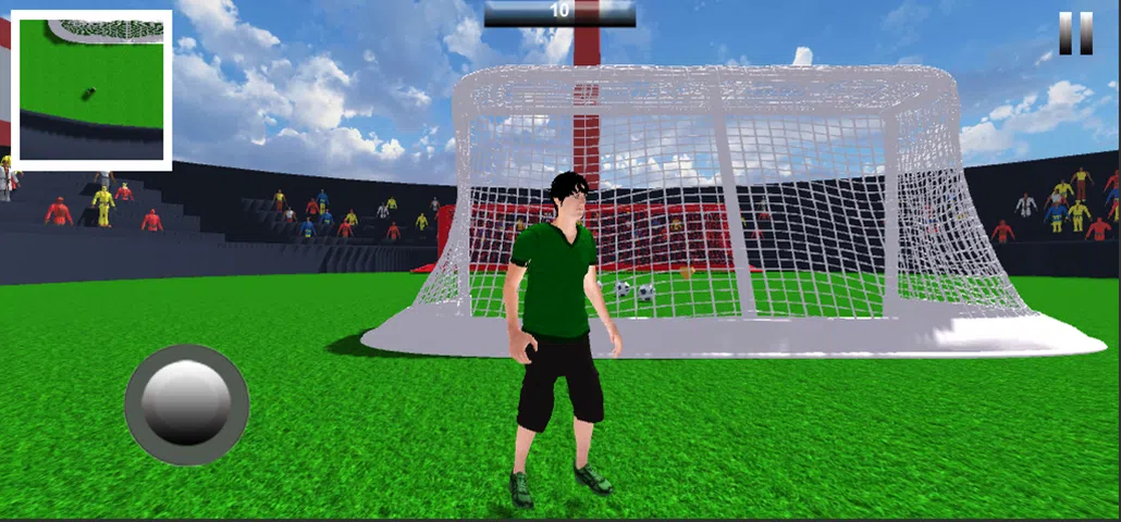 在这个游戏中,您将学习当周围有这么多敌人的球时如何保持耐心,而您是唯一与它们打交道的人。它会挑战你的意志。面对这些困难的不同国家的足球运动员将帮助您获得更高的分数。 • 您将拥有一名足球运动员来击败足球。当您得分更高时,您可以解锁其他足球运动员。 • 如果足球进入玩家球门,您的硬币将被扣除。你必须限制足球进入玩家目标。 • 向敌人的球门踢足球会增加您的硬币,因此您可以拥有更多的玩家。 • 更难的关卡将使您成为更多专家。 使用操纵杆,您可以向任何方向移动玩家。尝试击败遇到的每个球。成为一名专业的足球运动员