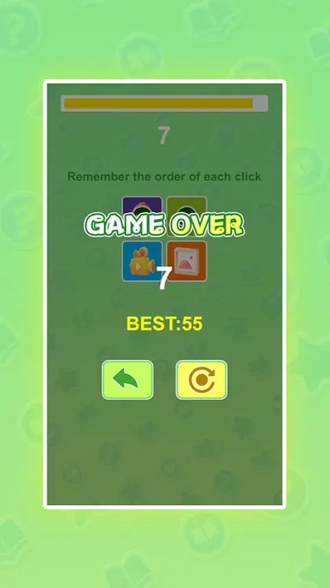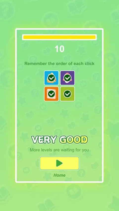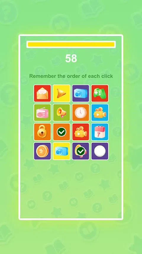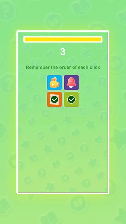欢迎来到记住顺序!在游戏中,你需要记住图片点击的顺序,并迅速做出反应,以正确的顺序点击图片。 游戏玩法: 记住顺序:游戏开始时,屏幕上会出现几张图片。第一次点击任何图片并记住它。 按顺序点击:在后续回合中,按照之前点击的顺序。比如第二次需要点击第一次选中的图片,再点击另一张图片,依此类推。 挑战时间:点击图片时注意时间限制,按规定顺序完成所有点击即可进入下一关。 完成关卡:点击所有图片后才能进入下一关。如果点击顺序错误,则游戏结束。 下载记住顺序,挑战它,看看你能正确记住多少个图案