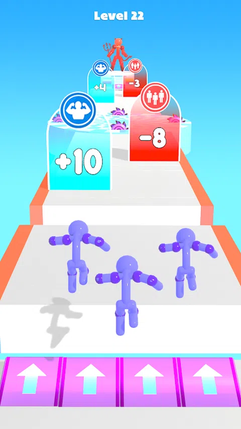 通过明智地选择门,将火柴人变得更大、更强大,并在数量上变得更大。目的是在跑道尽头击败敌人。到达终点并击败敌人并非易事,因为它要求您在道路上通过各种具有挑战性的障碍。 尖刺、移动和旋转平台、圆锯片可能会阻止您保持全部火柴人数量,并导致游戏结束。因此,您需要明智地选择故意棘手的门,以增强力量并使自己变得更大。因此,当您既强大又拥挤时,胜利很快就会属于您。 创造巨大的人群,通过障碍赛,到达终点并击败巨大的怪物