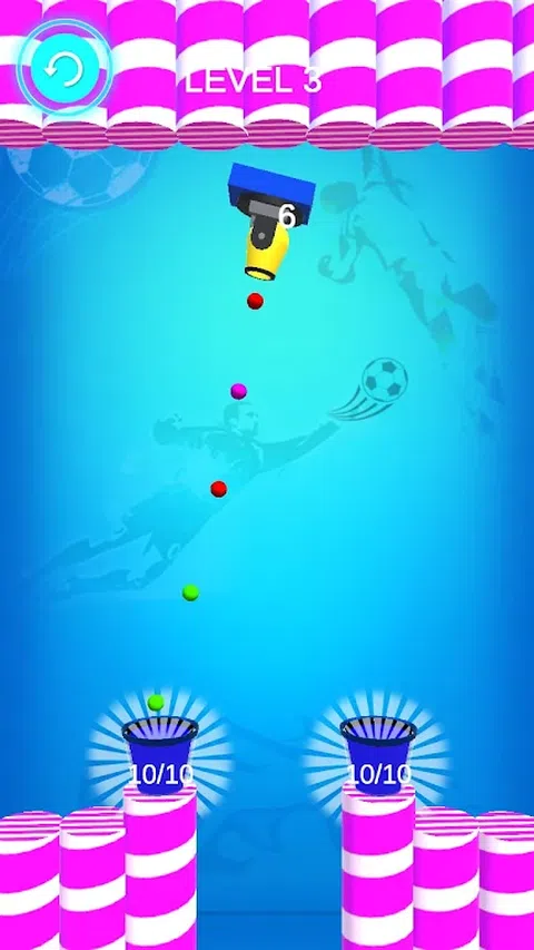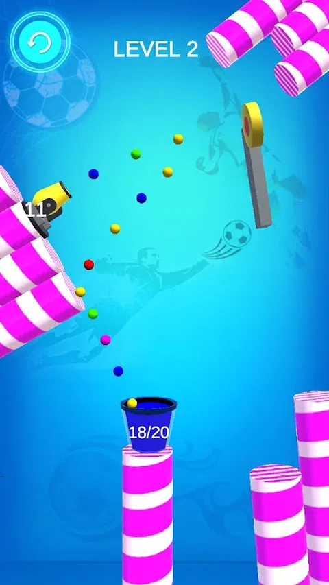 用球填充所有桶以完成关卡。 用手指移动各种物体,以改变射击球的方向。聪明瞄准