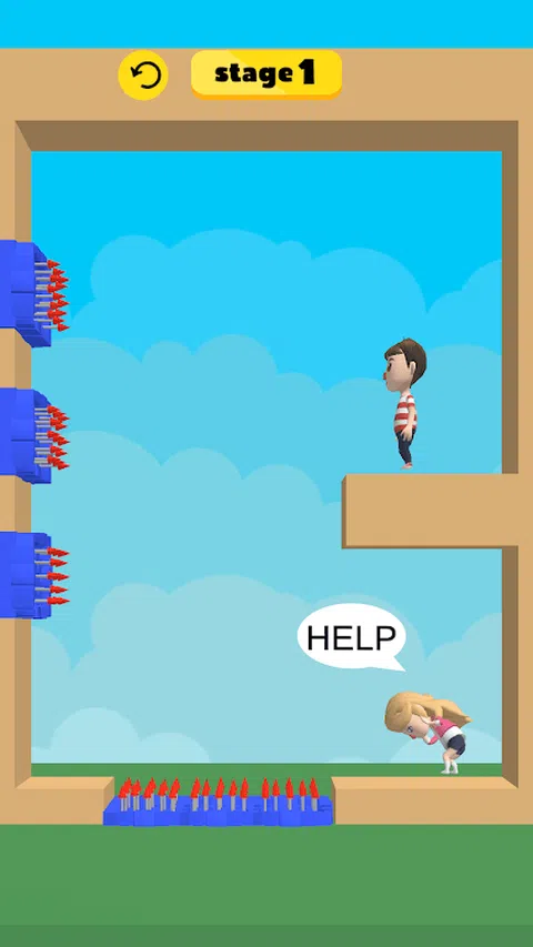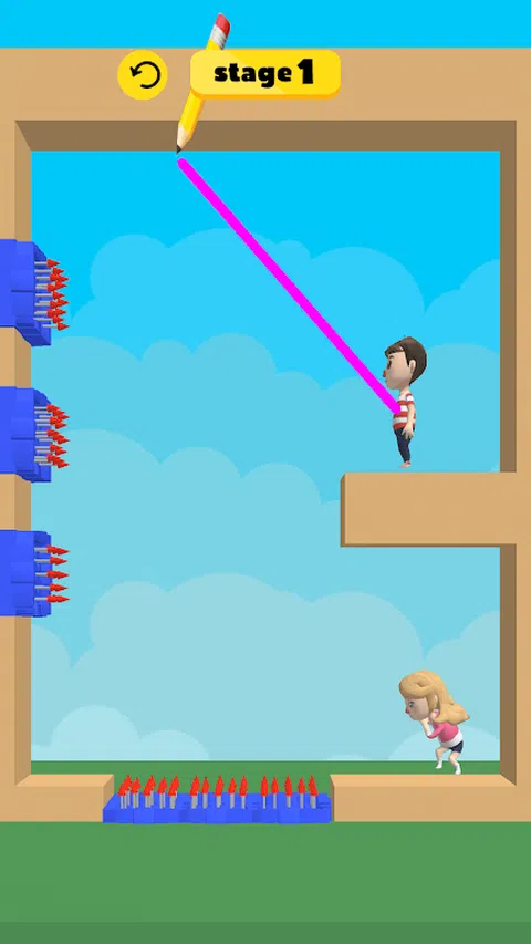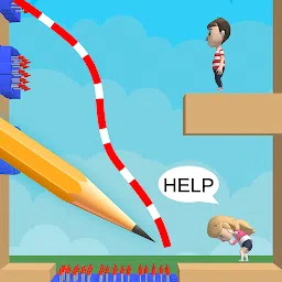 画一根绳子来帮助需要帮助的妇女。 绳子像橡胶一样伸展,滑动即可切断