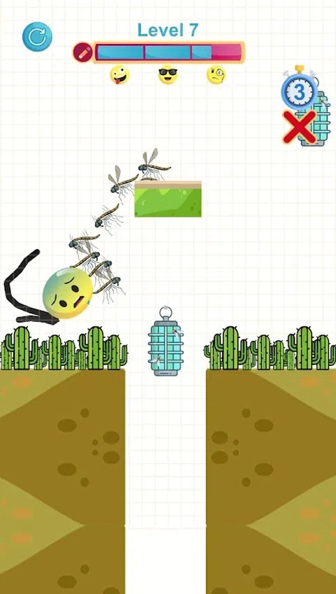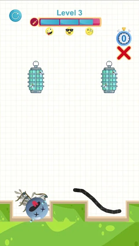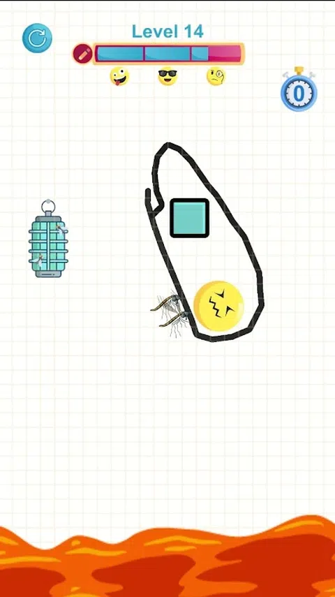 小心!苍蝇出来把它叫醒。拯救困倦表情符号的唯一方法是画一条线来阻止那些苍蝇。苍蝇并不是唯一可以伤害他的东西。困倦的表情符号还必须克服熔岩、水、尖峰和酸,才能到达安全地点。请帮助他! 睡眠处于危险之中