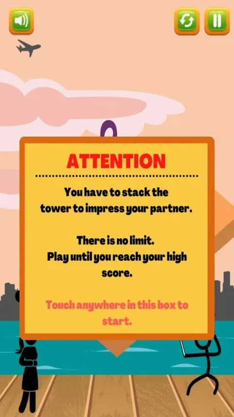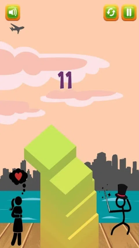 通过堆叠塔来帮助孤独的火柴人打动他的爱。没有高度限制