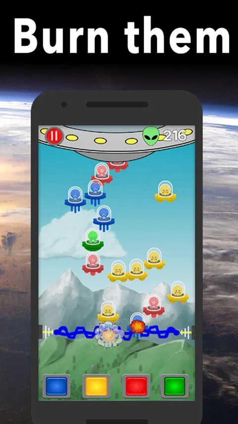 你作为“地球”星球的捍卫者,掌握在人类最伟大的发明“electromagnum 2462”的手中。在它的设置中放置了各种电射线,在不同类型的外星人下。在这些怪物的猛攻下,你的任务尽可能坚持下去