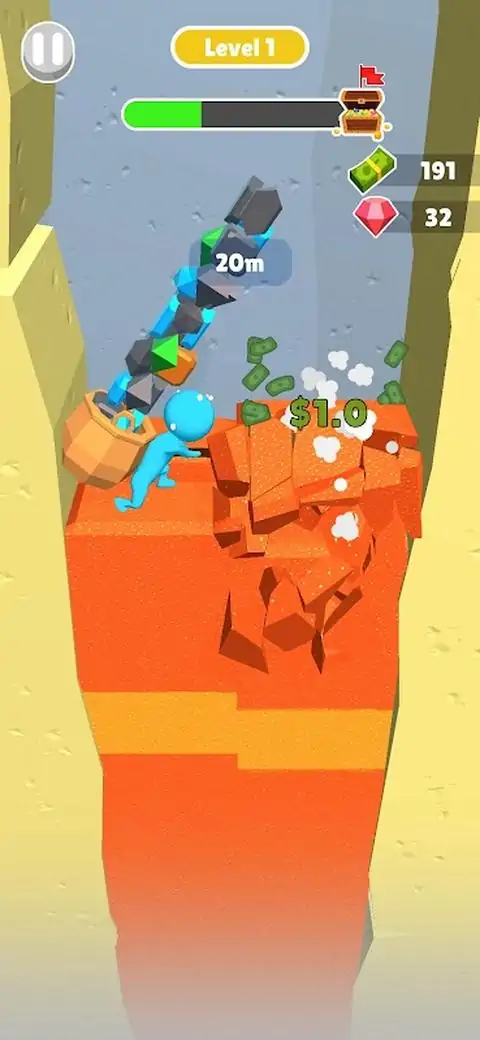 深入地下并挖掘各种宝石块,以获得各种珍贵的宝石和设备。立即开始您的寻宝之旅