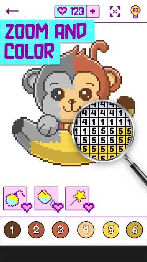 按数字排列的像素着色书