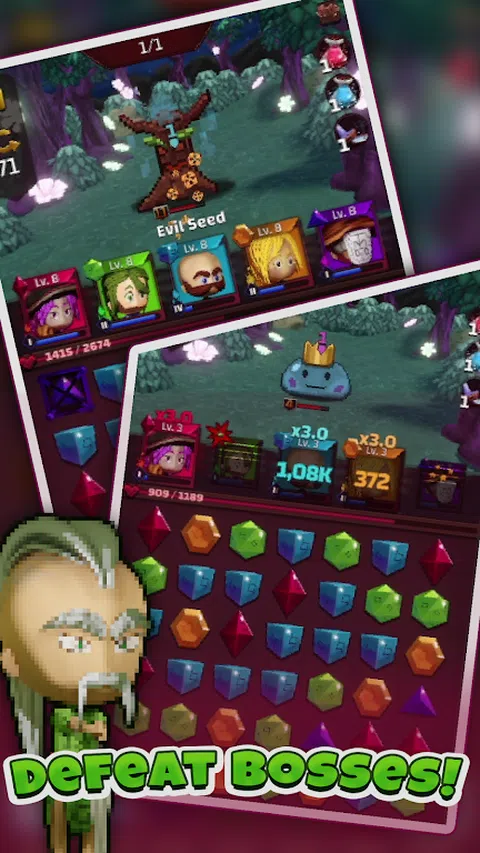 Dangun Chef 是一款具有 RPG 元素的益智游戏。组建五名厨师组成的小组,冒险进入最危险的环境寻找食材。 你必须细心! 在你的冒险过程中,敌人将带来更大的挑战,他们每个人都有独特的能力、生命和攻击,这将使你更难完成拼图。 强大的首领! 您已经有时间练习并进入最危险的区域,现在是时候与真正痛苦的老板战斗了,他们每个人都实现了以前的挑战并获得了更多的生命。 发动强大的攻击! 组合更多的符文以执行更强大的攻击,每个级别都允许您召唤强大的组合炸弹,以清除桌子的很大一部分并帮助您征服地牢。 具有独特技能的厨师! 你的厨师就是你的战士,他们每个人都拥有独特的能力,可以适应你的游戏风格。 升级它们,为不同的地区做好准备。 出售最好的菜肴并准备战斗