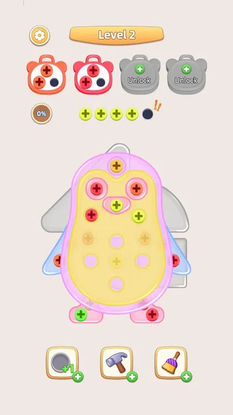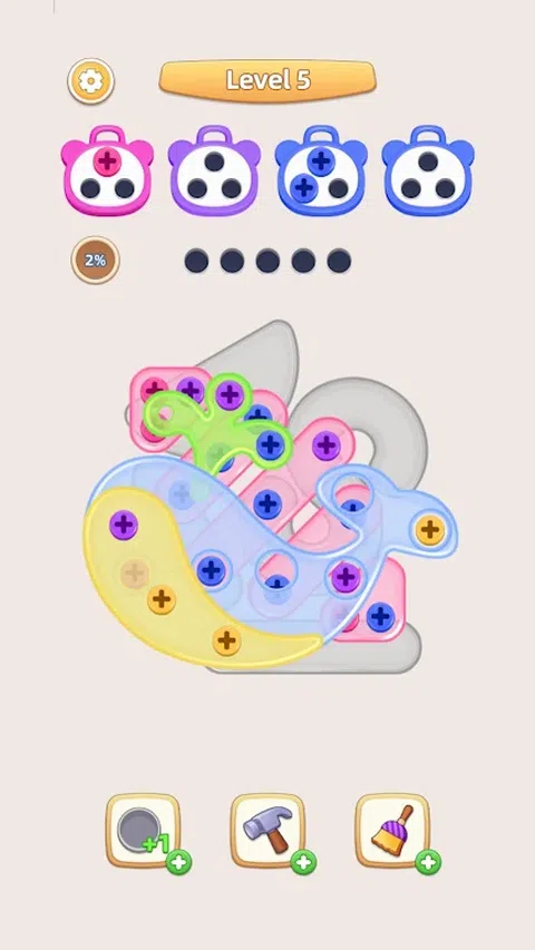 潜入充满活力的螺丝拼图世界 - 螺丝堵塞拼图,您的快速思维和战略性拧开技能至关重要!沉浸在一款螺丝销钉益智游戏中,它结合了色彩、策略和乐趣,所有这些都在一个令人兴奋的益智包中。? 如何玩螺丝游戏 探索迷人的螺母和螺栓益智螺丝游戏,螺丝螺母 - Pin Jam Puzzle。您的任务是按照与相应螺丝盒颜色相匹配的顺序点击并拧下螺丝。请记住,带有螺母和螺栓的色板是堆叠在一起的,因此请计划好您的移动,明智地拧下螺丝销。不要填满闲置的螺丝钉盒或被障碍物卡住,否则螺丝游戏失败。您可以策略性地使用助推器来拧开螺母和螺栓,并掌握越来越复杂的螺栓脑筋急转弯。 螺丝游戏的游戏特色 - 超过 100 个螺丝销谜题,测试你的脑力? - 螺丝游戏中明亮多彩的螺丝钉图形和舒缓的音效 ? - 没有计时器,按照自己的节奏玩,毫无压力地拧开任何螺栓 您准备好进入坚果和螺栓分类游戏的令人兴奋和令人费解的螺栓拼图挑战了吗?立即下载螺丝螺母 - 销钉拼图,拧开螺母和螺栓,通过复杂而迷人的脑筋急转弯,踏上螺母和螺栓分类之旅!释放你的螺栓解开谜题技能,在每一回合都取得坚果和螺栓分类的胜利