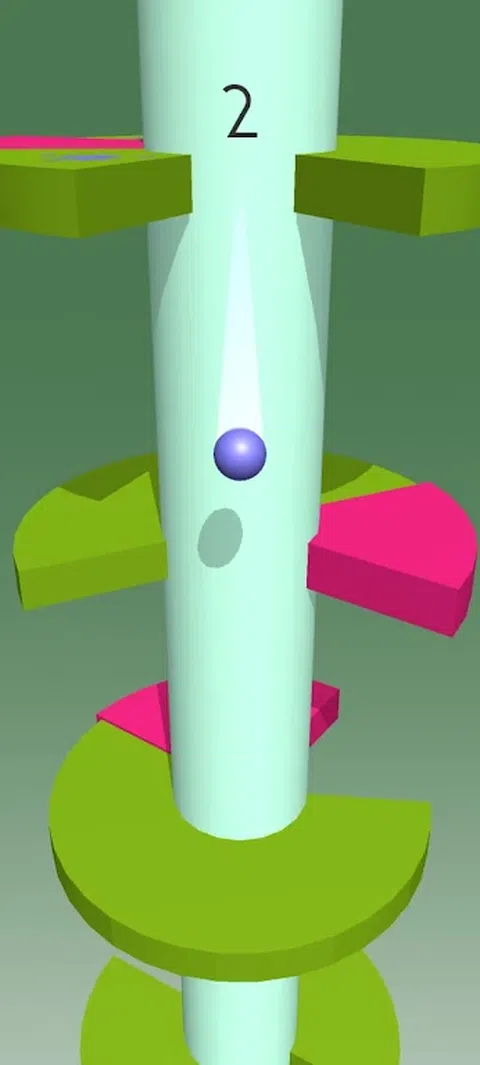 用手指滑动旋转平台,使球弹跳通过一系列螺旋平台。游戏的目标是到达塔的底部,而不会碰到平台上的任何障碍物或彩色区域。随着玩家通过关卡,游戏变得越来越难,障碍更多,游戏速度更快,平台上添加了不同的颜色