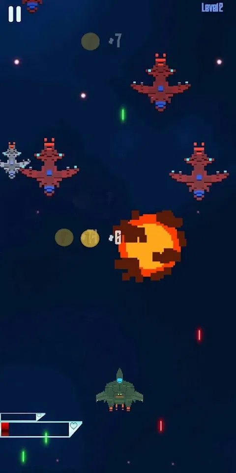 两种游戏模式 外星人: 杀死所有敌方船只,通过关卡,击败首领以解锁新船只并变得更强大