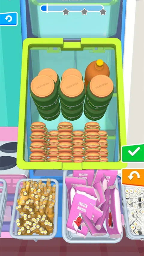您是太空组织的专家吗?”“这款冰箱可以容纳大量食物,饮料和其他物品。如果正确安排它们,将会有更多的空间。可以打开冰箱并以有意义的方式排列它们。一次将物品拖到垃圾箱中,直到装满冰箱为止。这很容易和放松。 您在大型超市购物了吗?凉爽的! 包装好后,是时候补充杂货并去杂货店购物了。 冰箱组织者3D使您可以从大型市场上拿走所有购买,并根据需要进行补货或组织它们。 听起来很棒!东方!这就是您的购买方式。 冰箱组织者3D结合了组织和战略。您需要先储备冰箱,然后购买组织系统。开始用不同的物品来补货,例如牛肉,鸡肉或奶酪。 根据物品的尺寸和高度对购物车进行排序。通过冰箱补充策略,您可以在冰箱中安装更多物品。 游戏功能 1.免费获得此游戏 2.您可以在冰箱中解锁更多空间以存储更多物品。 3.食品,饮料和其他成分有很多选择。 4.惊人的视觉效果和出色的ASMR体验 您喜欢哪个冰箱组织者?是你,我会说