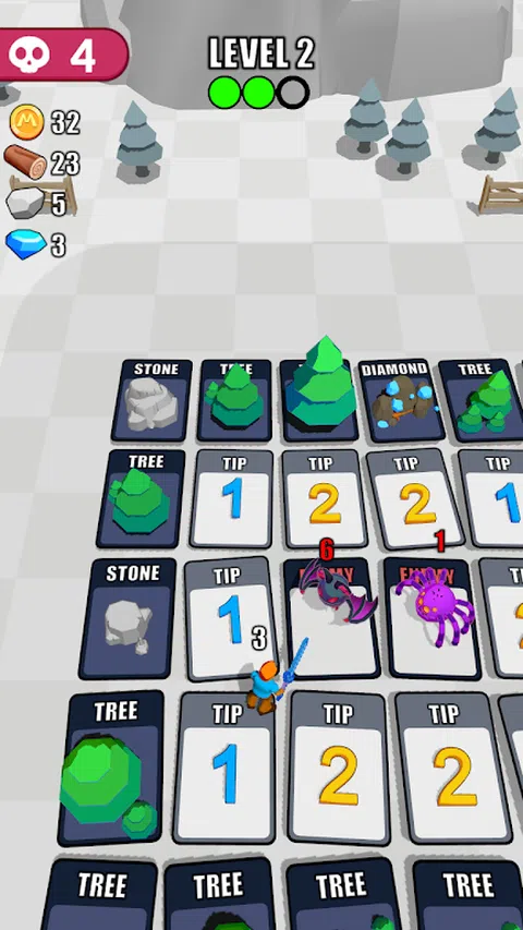 避免打扰沉睡的怪物。使自己更强大,让敌人战斗至死。 地面上的数字会告诉您周围有多少敌人,您需要仔细判断并解锁新卡