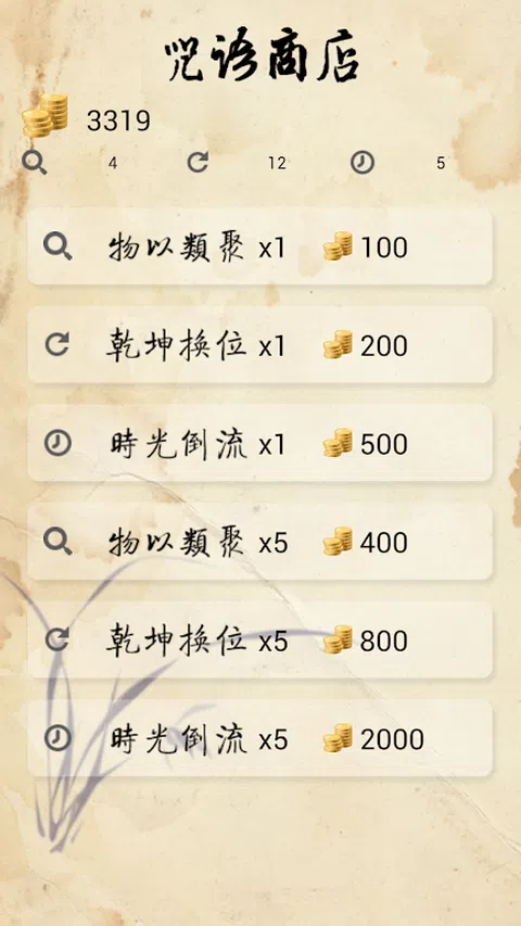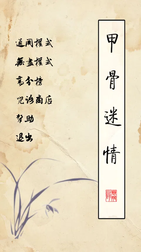 《甲骨文连连看》(原名《甲骨迷情》)是一款连连看类型的游戏。在游戏的过程中,玩家可以认识一部分甲骨文,并初步了解中国文字的起源和演变,达到寓学于乐的目的。 游戏规则如下: 1、玩家需要在图中找到相同的甲骨文并点选它们,选中后,程序会判断它们之间是否有路径可以通行,并且该路径的转弯处是否小于等于两个。如果同时满足上述条件,则两个相同的文字会沿路径向一起靠拢。 当最终靠到一起时,文字消失,玩家获得积分。 2、路径越长,积分越多。 3、当所有的甲骨文都不能连通的时候,整个布局会被打乱并重新排列。玩家不必担心出现无解的情况。 4、为了获得更高的积分,玩家可以使用咒语。咒语一:物以类聚,自动连接并消除一对甲骨文。咒语二:乾坤换位,打乱所有甲骨文的排列位置,进行重组。咒语三:时光倒流,延长本局游戏时间。 5、过关时剩余的时间会转变为金币加给玩家。玩家可以使用金币购买咒语。 6、游戏一共有两种模式可以选择。通关模式:一共有6大关,每关包含24小关。玩家每通过一个关卡,就可以解锁下一个关卡。无尽模式:游戏会一直进行下去,通过一关后自动进入下一关,直到本局的时间用尽。无尽模式的游戏积分会上传到服务器上,玩家可以查看游戏排行榜,和其他玩家比个高下
